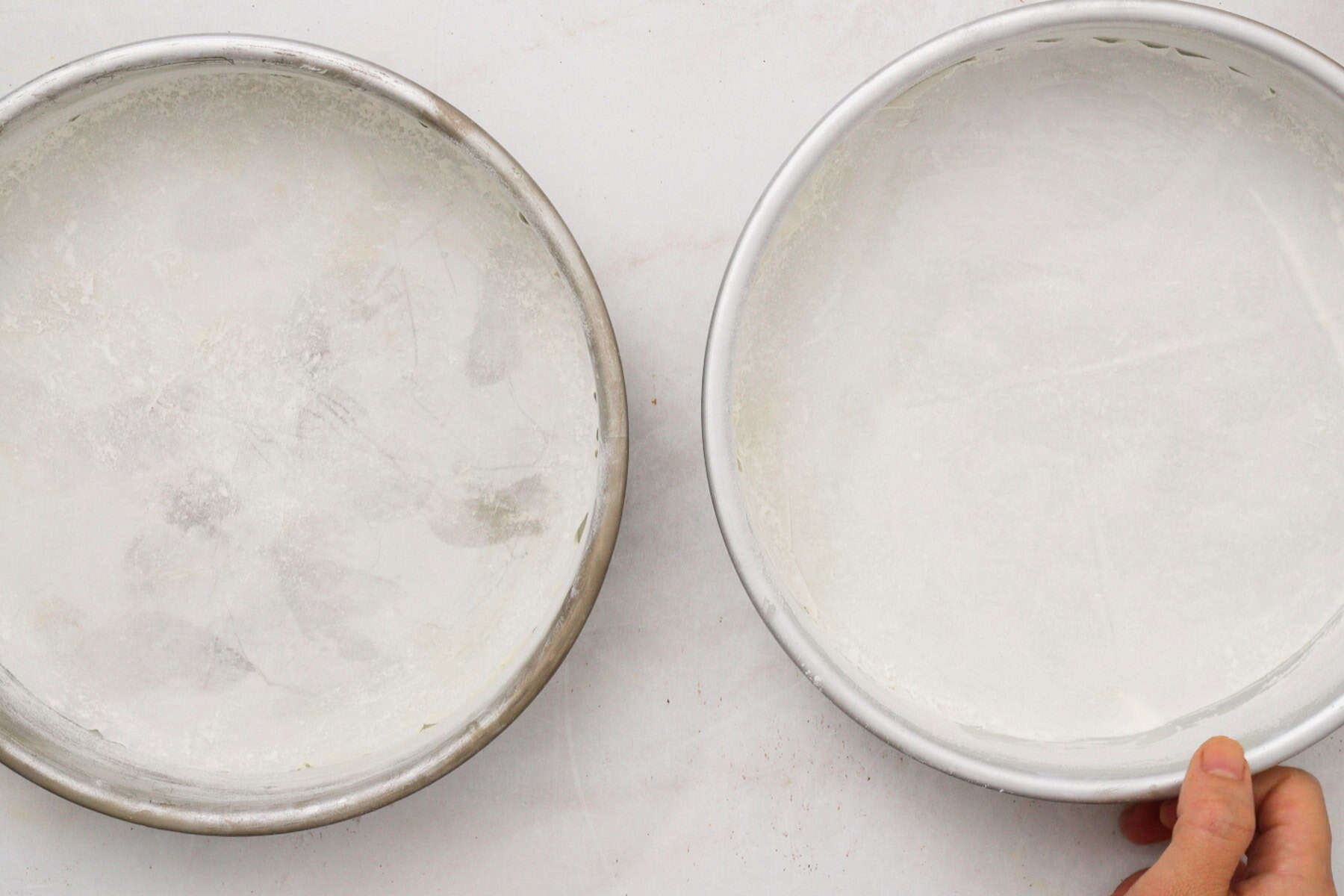 - Preheat your oven to 350°F (175°C). Grease two 8-inch round cake pans with butter and line the bottoms with parchment paper.